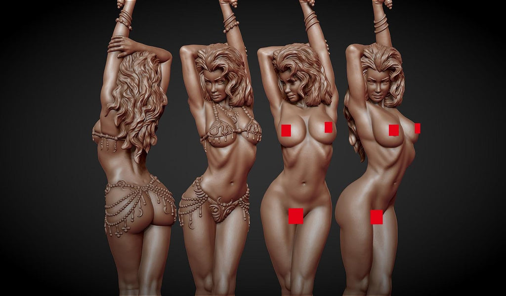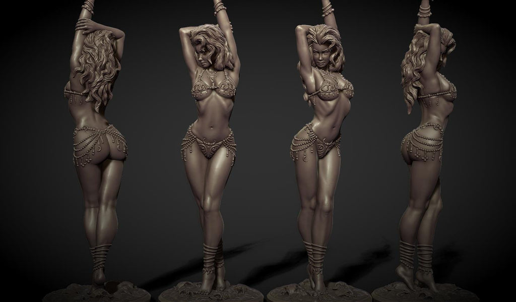 Meet Thea, a striking fantasy pinup character designed to be a centerpiece in any miniature display, diorama, or role-playing collection. Her confident pose and ornate jewelry suggest a captivating backstory, whether she’s a dancer, an entertainer, a spellbound captive, or a powerful heroine awaiting her moment.