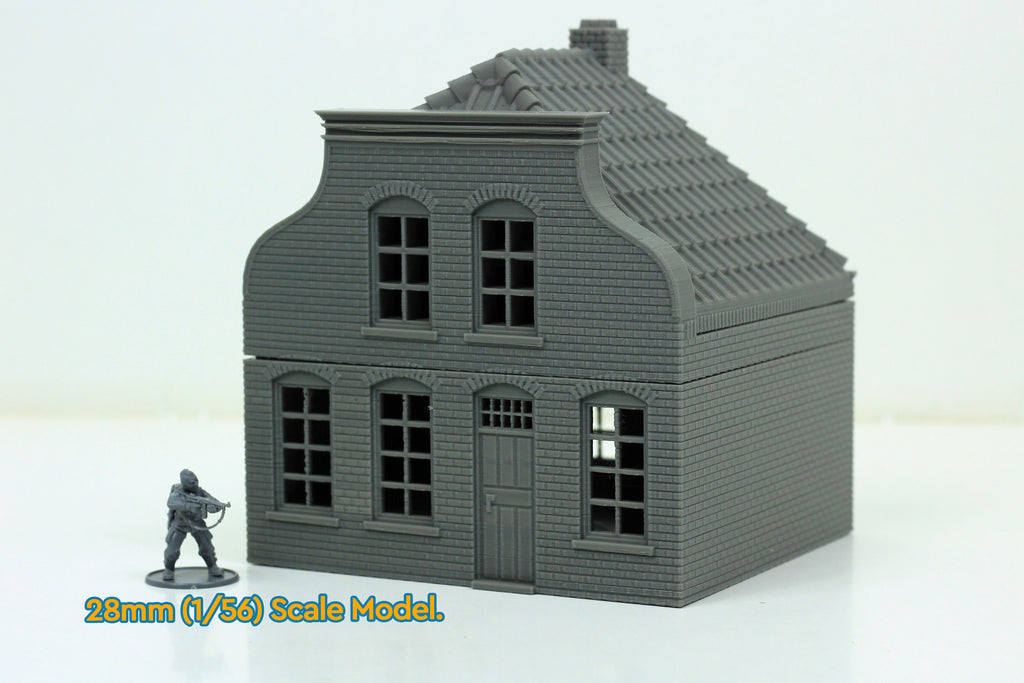 This miniature model house is accurately modeled by me personally. It is inspired by Dutch architecture as seen in all towns in the Netherlands. This miniature house is designed for wargames like bolt action, chain of command, and also modern warfare Team Yankee in mind, but also railroad HO scale collectors will find this piece indispensable in their collection.