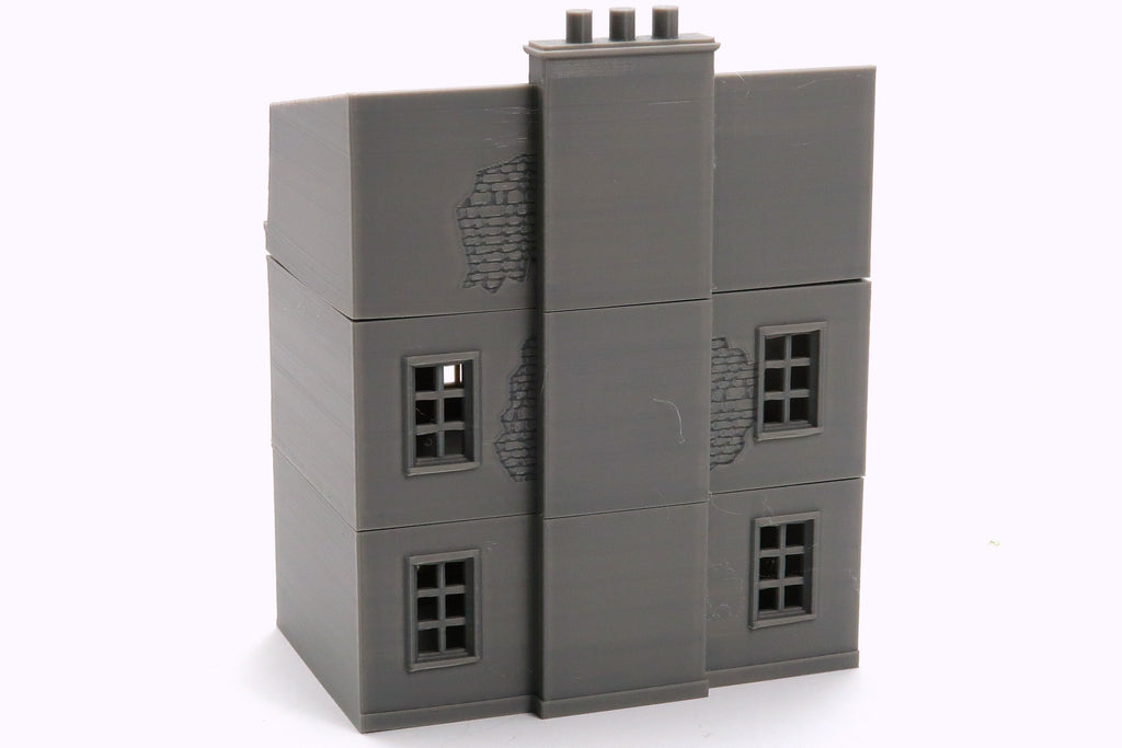 Please note that all parts come unpainted and unprimed, though I ensure they are cleaned up before shipping. Some small fibers may still be present. Buildings come in either grey or black, and are available in three scales: 15mm, 20mm, and 28mm.