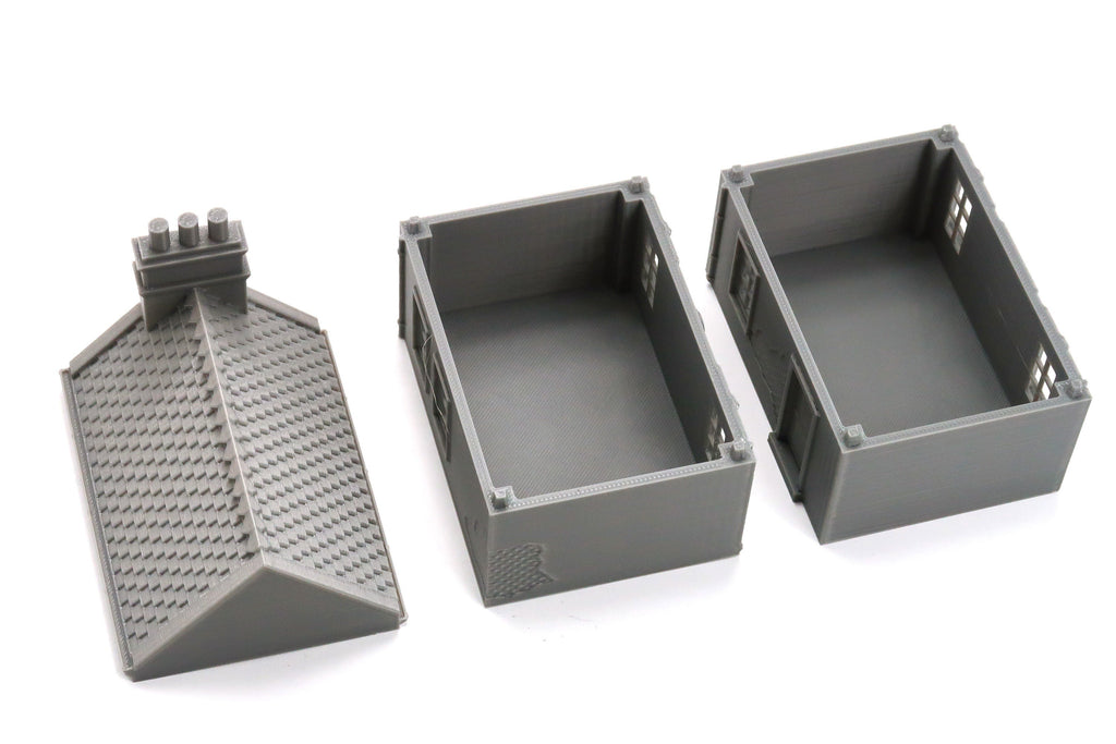 Please note that all parts come unpainted and unprimed, though I ensure they are cleaned up before shipping. Some small fibers may still be present. Buildings come in either grey or black, and are available in three scales: 15mm, 20mm, and 28mm.