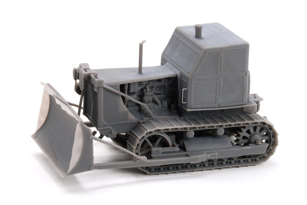 The T-100 tractor was a heavy tracked machine developed in the Soviet Union from the late 1930s onward. Known for its rugged reliability, simple mechanical layout, and powerful diesel engine, the T-100 served for decades across the USSR in construction, agriculture, forestry, military engineering, and recovery roles. Its distinctive boxy cab, exposed engine sections, and wide steel tracks make it instantly recognizable and highly atmospheric to tabletop scenarios ranging from WW2 through the Cold War and beyond.