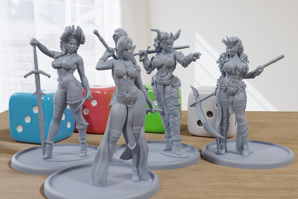 The Bad Girls Gang - 3D Printed Minifigures for Fantasy Miniature Tabletop Games DND, Frostgrave 28mm / 32mm / 75mm