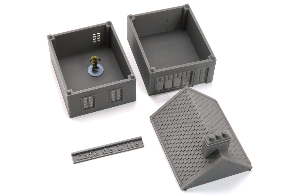 Vous cherchez à enrichir vos décors de l'Europe de la Seconde Guerre mondiale avec des bâtiments très détaillés pour vos jeux de guerre sur table comme Flames of War, Bolt Action ou Chain of Command ? Ce décor s'inspire de la petite ville normande de Sainte-Mère-Église telle qu'elle était en 1944. Le bâtiment n'est pas une réplique exacte ; l'image qui a servi de source d'inspiration est disponible.