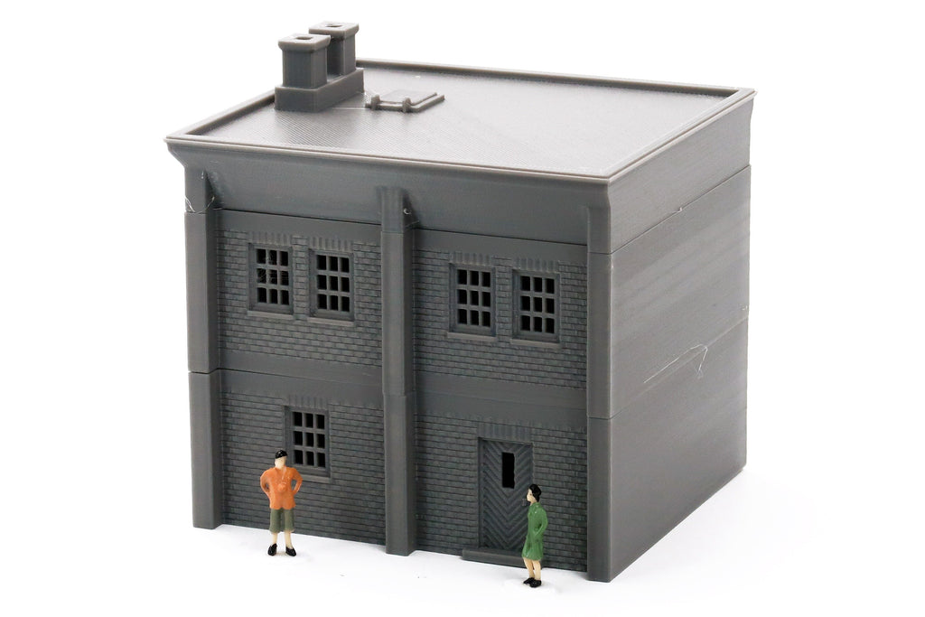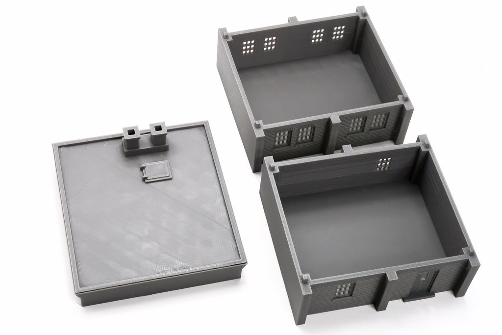Tous les bâtiments sont non peints et non apprêtés. Je fais le nettoyage, mais il peut rester quelques minuscules fibres. Ils peuvent être gris ou noirs. Chaque bâtiment est créé à partir de sections empilables comme le montrent les images.