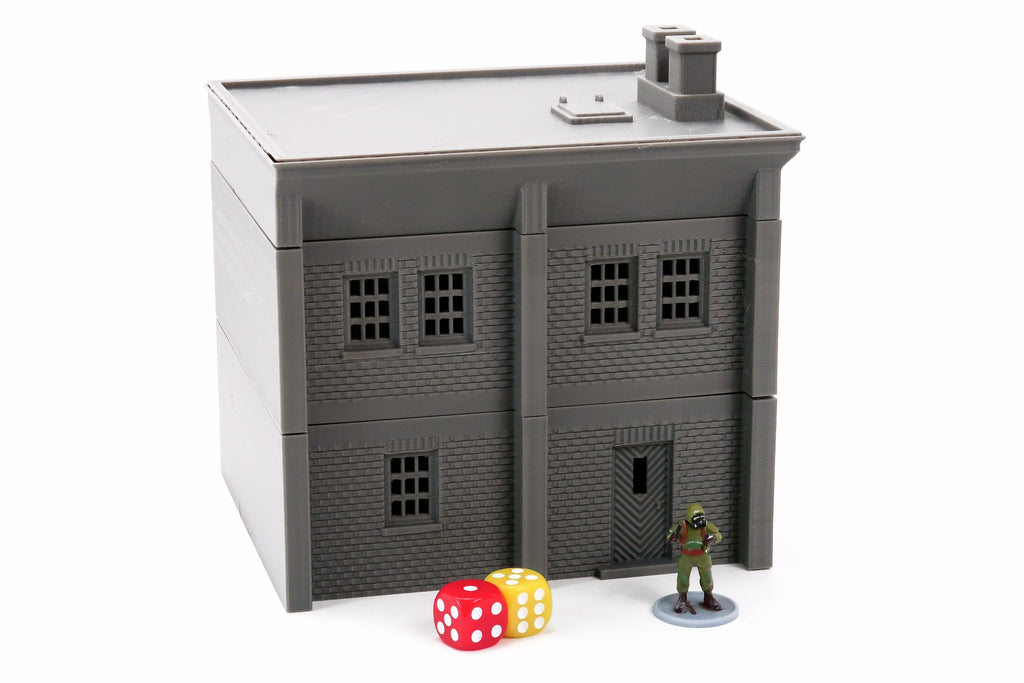 Vous cherchez à agrandir votre terrain de jeu sur l'Europe pendant la Seconde Guerre mondiale avec des bâtiments très détaillés pour des jeux de guerre sur table comme Bolt Action ou Chain of Command ? Ne cherchez pas plus loin. L'usine est un bâtiment assez grand imprimé en 3D, composé de plusieurs éléments. Créée dans un contexte de Seconde Guerre mondiale, elle trouvera néanmoins sa place dans des scénarios plus modernes pour des jeux sur la Guerre Froide et la Troisième Guerre mondiale comme Team Yankee. Bien que son style ne soit pas typique de l'ère soviétique, cette usine peut s'intégrer parfaitement dans la Zona Alfa ou d'autres scénarios post-apocalyptiques.
