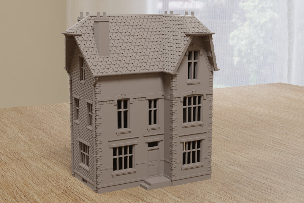 A typical northern French townhouse, straight from the streets caught between two world wars. Solid brick walls, tall windows, and a steep tiled roof make this building a natural focal point for urban firefights and tense close-quarters encounters.