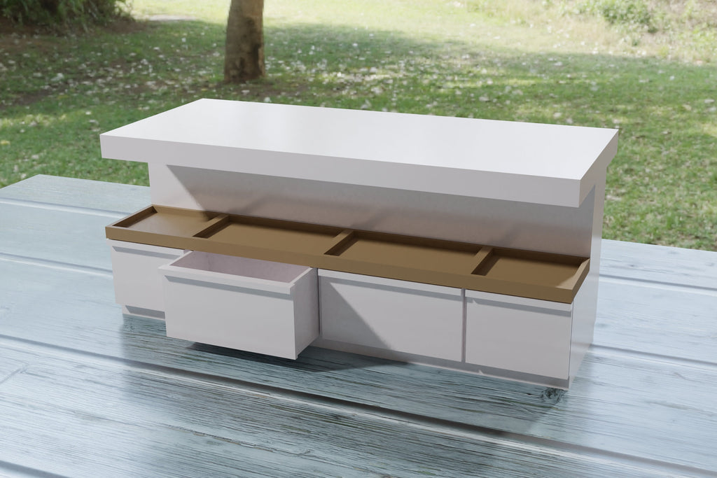 Gather your doll friends for a cozy feast around the this modern luxurious kitchen island. A MUST have item in your modern dollhouse design.