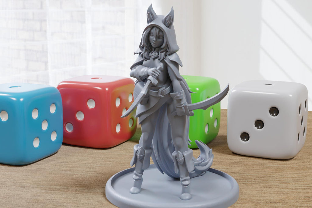 Rogue Kitsune Charlie Sexy Pin-Up - 3D Printed Minifigure for Fantasy Miniature Tabletop Games DND, Frostgrave 28mm / 32mm / 75mm