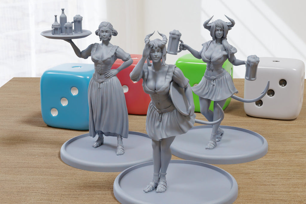 Tiefling Barmaids Sexy Pinup SFW/ NSFW 3D Printed Minifigures for Fantasy Miniature Tabletop Games DND, Frostgrave 28mm / 32mm / 75mm